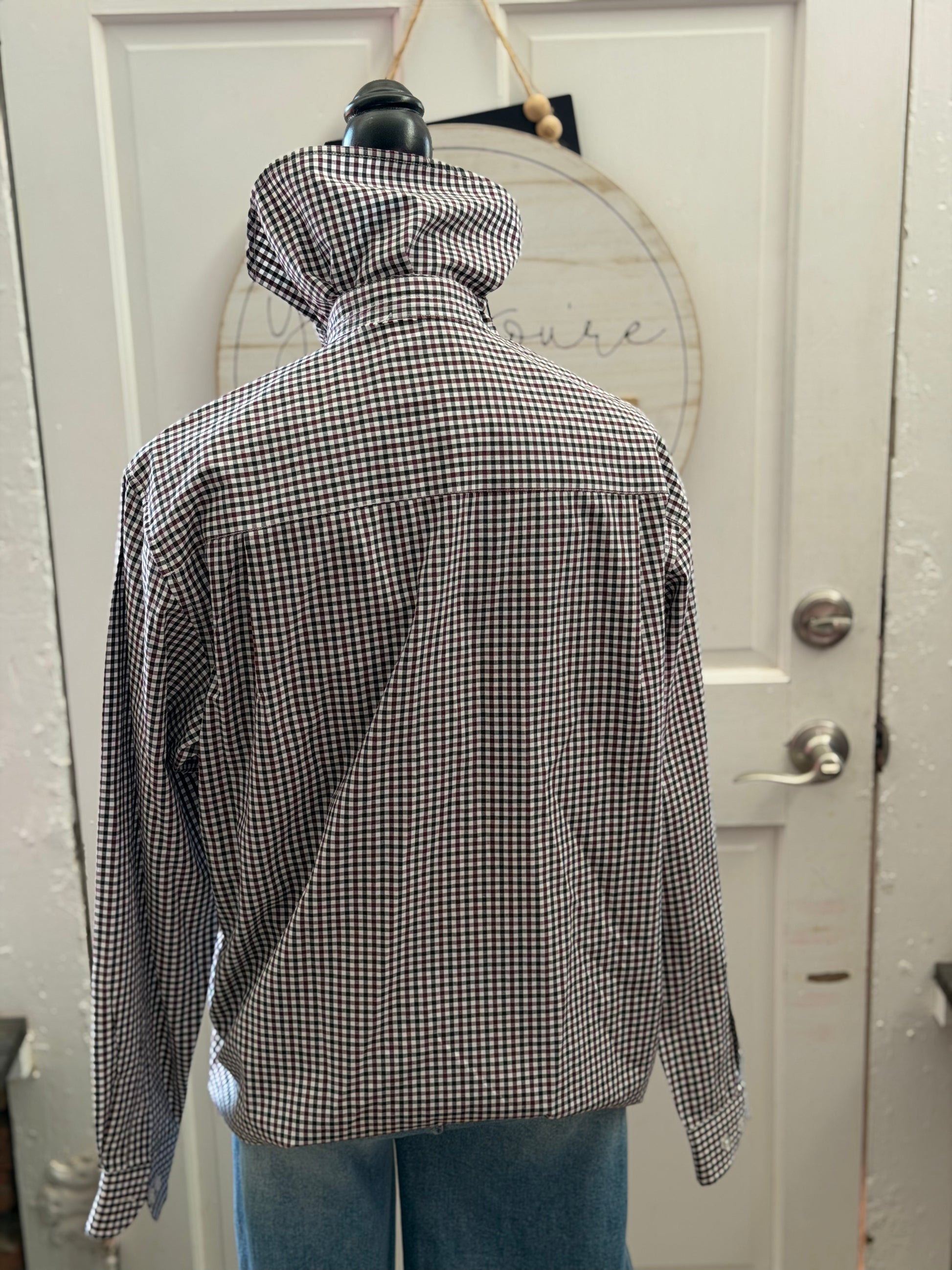 Texas A&M button up with crinkle collar and raw edge. Medium