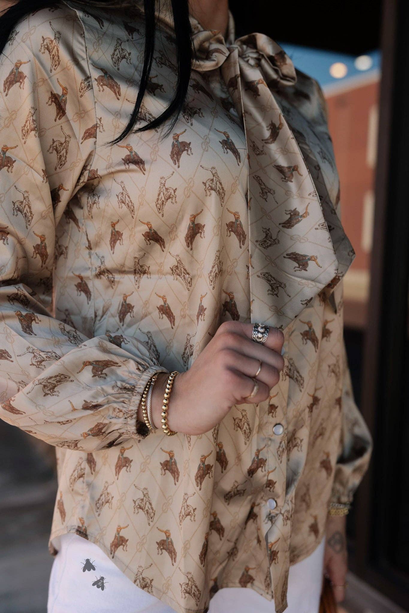 Embrace the western aesthetic with the Brimstone Top. This beige button-down shirt is perfect for women who appreciate unique fashion. The versatility of this piece allows it to seamlessly fit into any wardrobe, making it a staple for any outfit. Enjoy the fusion of western and unique in this timeless top.