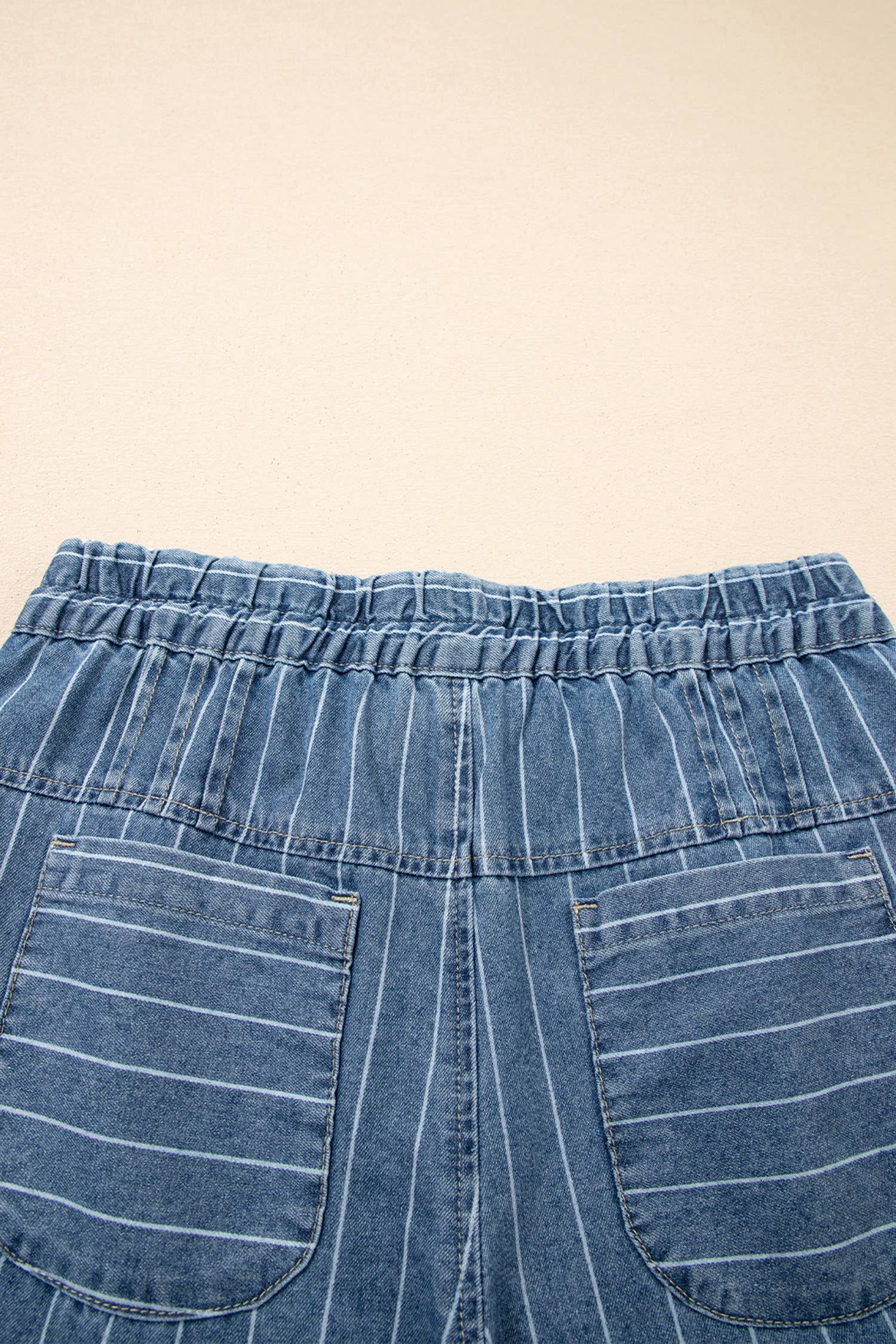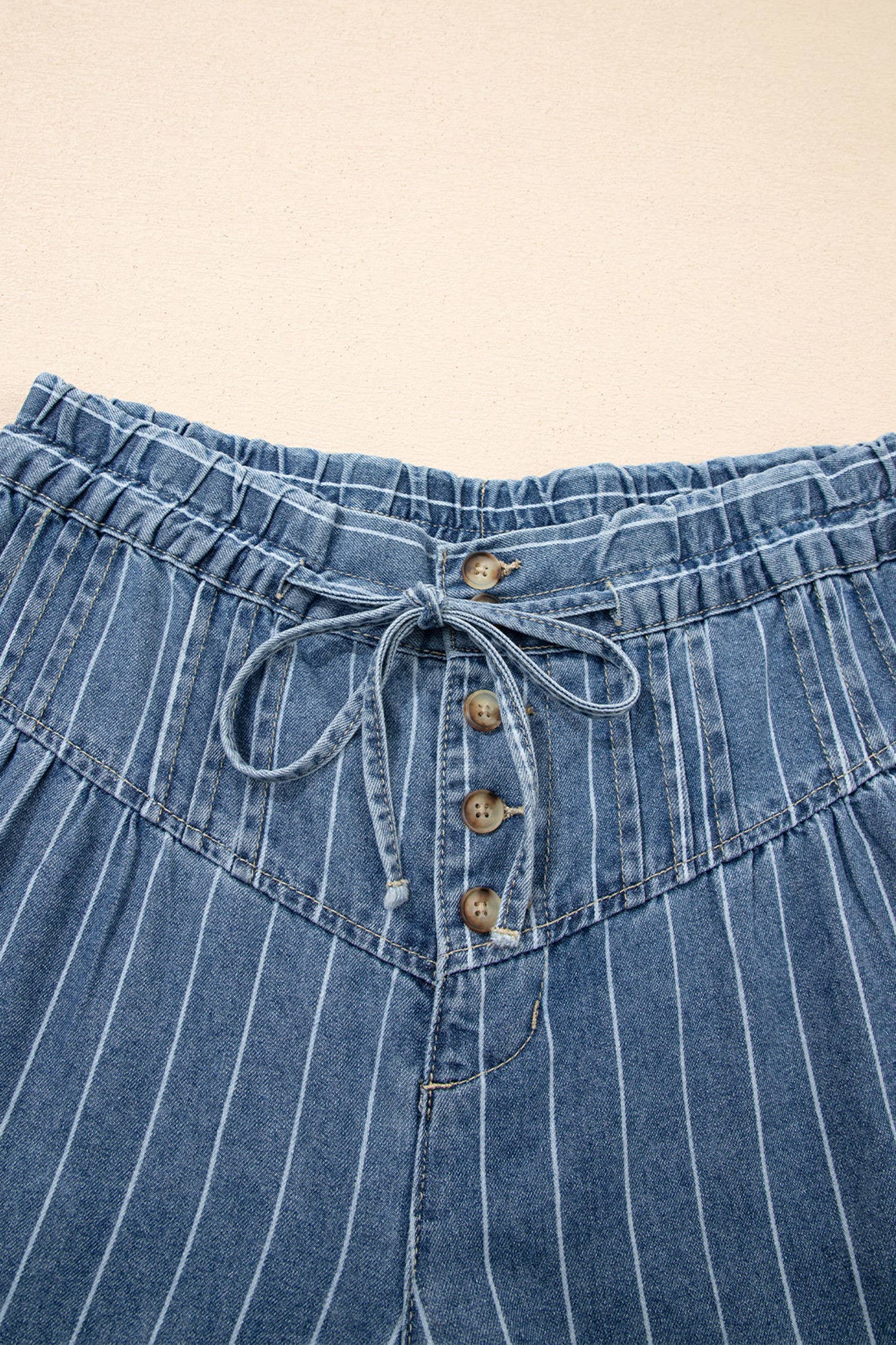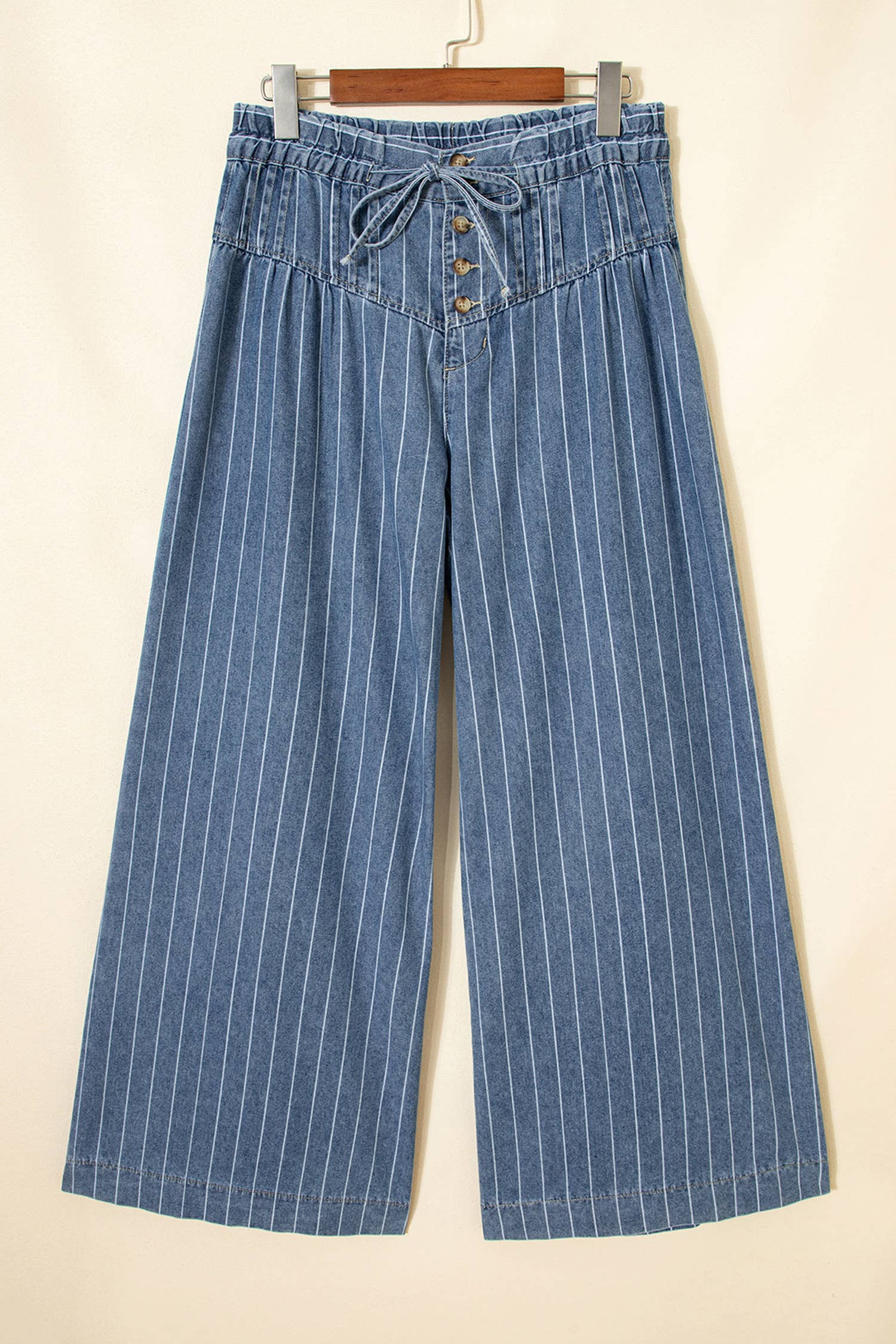 Button Pleated Drawstring Waist Casual Wide Leg Jeans