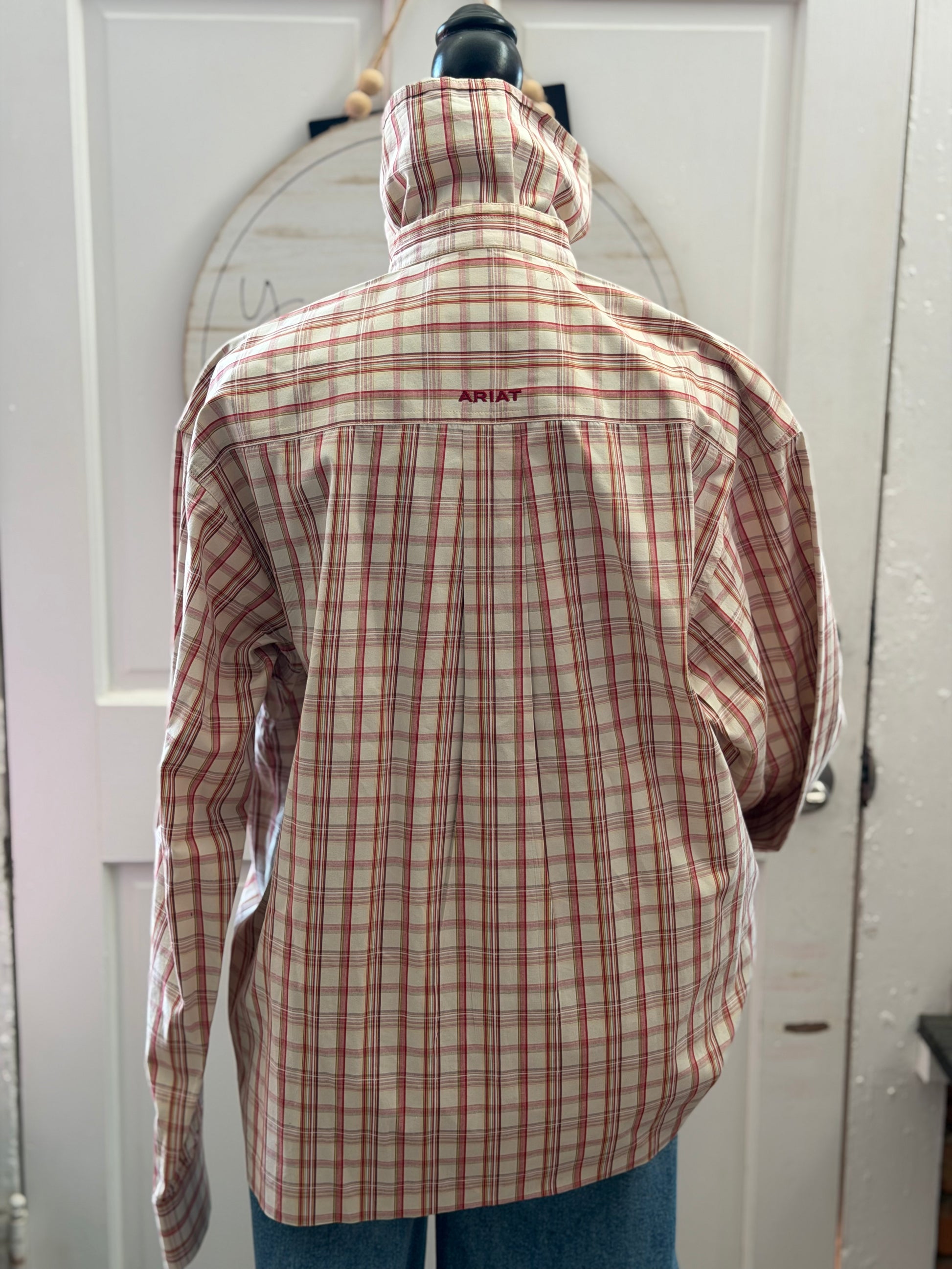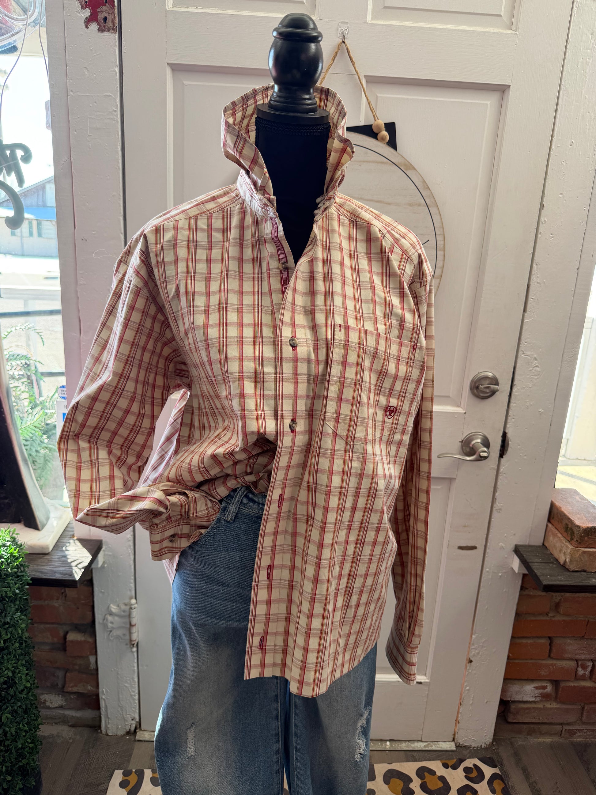 Ariat pro series button up with crinkle collar and raw edge. Medium