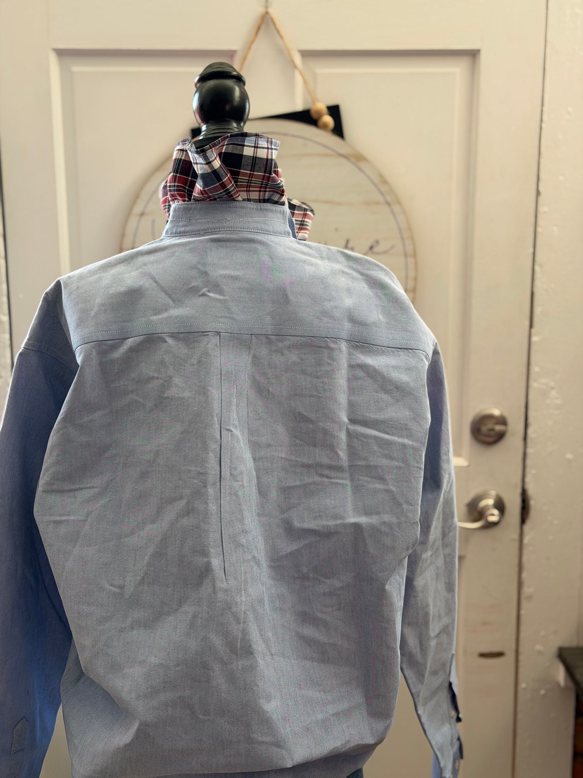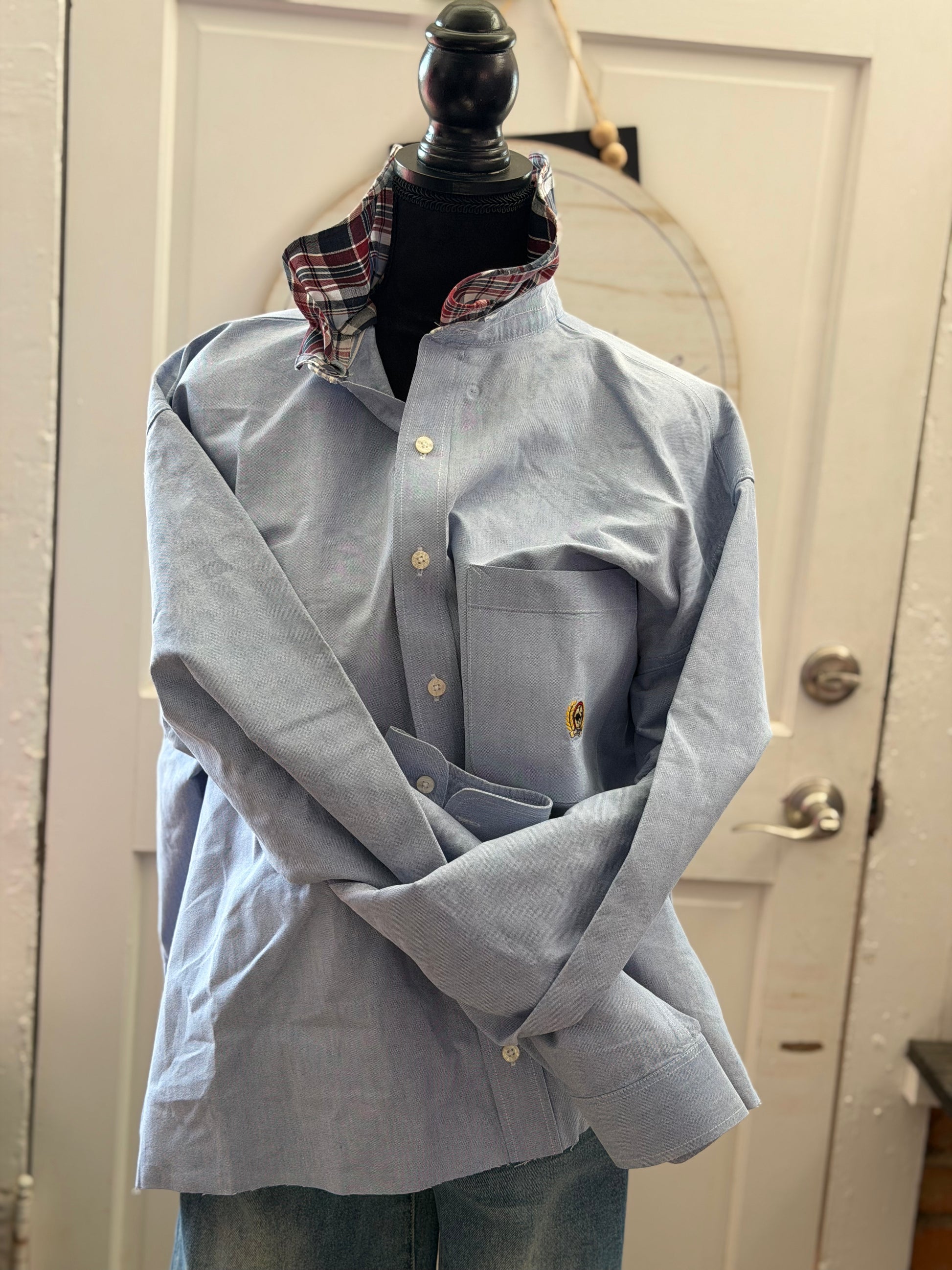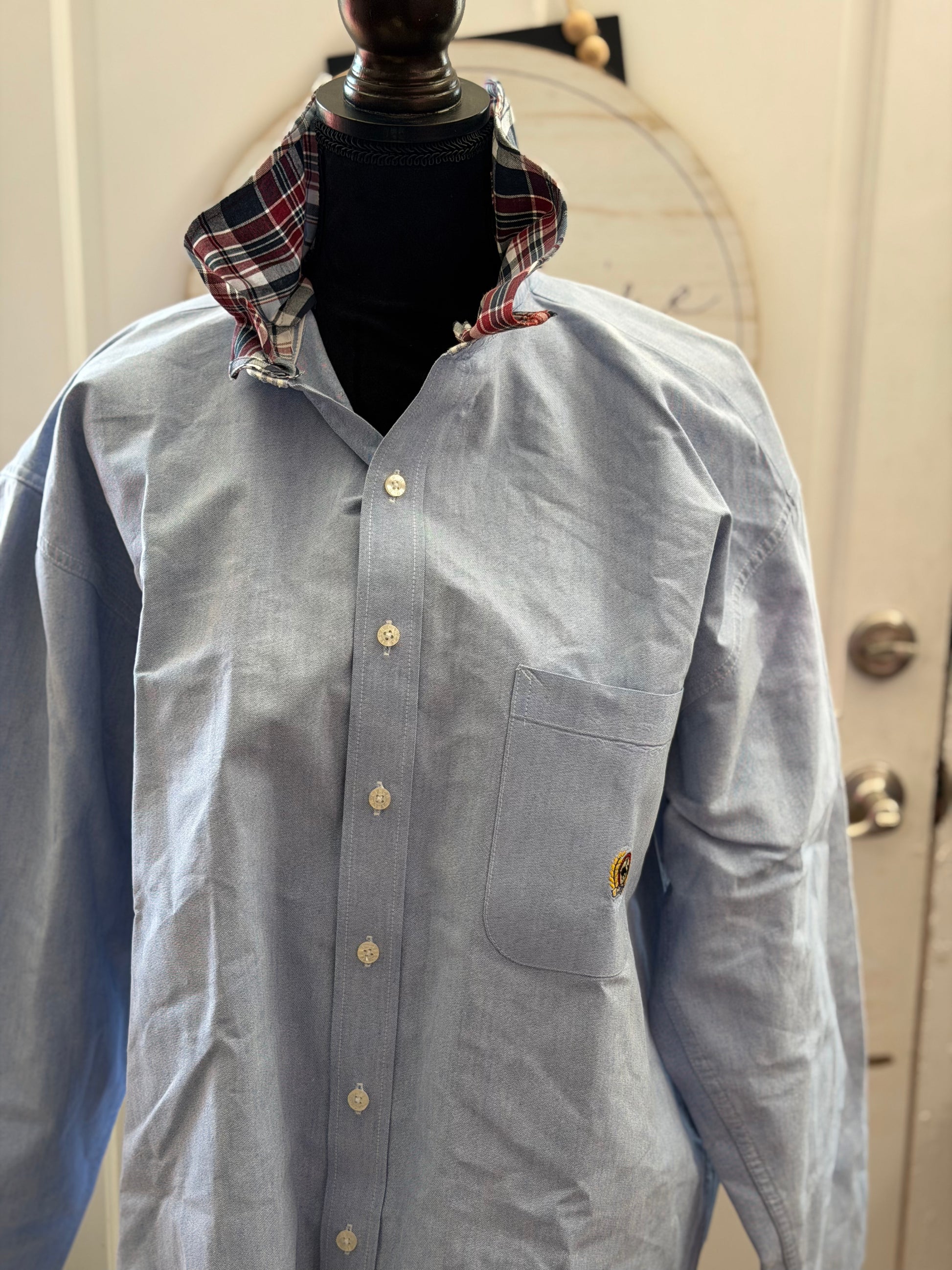 Cinch XL button up, crinkle collar and raw edge. SUPER Starched.