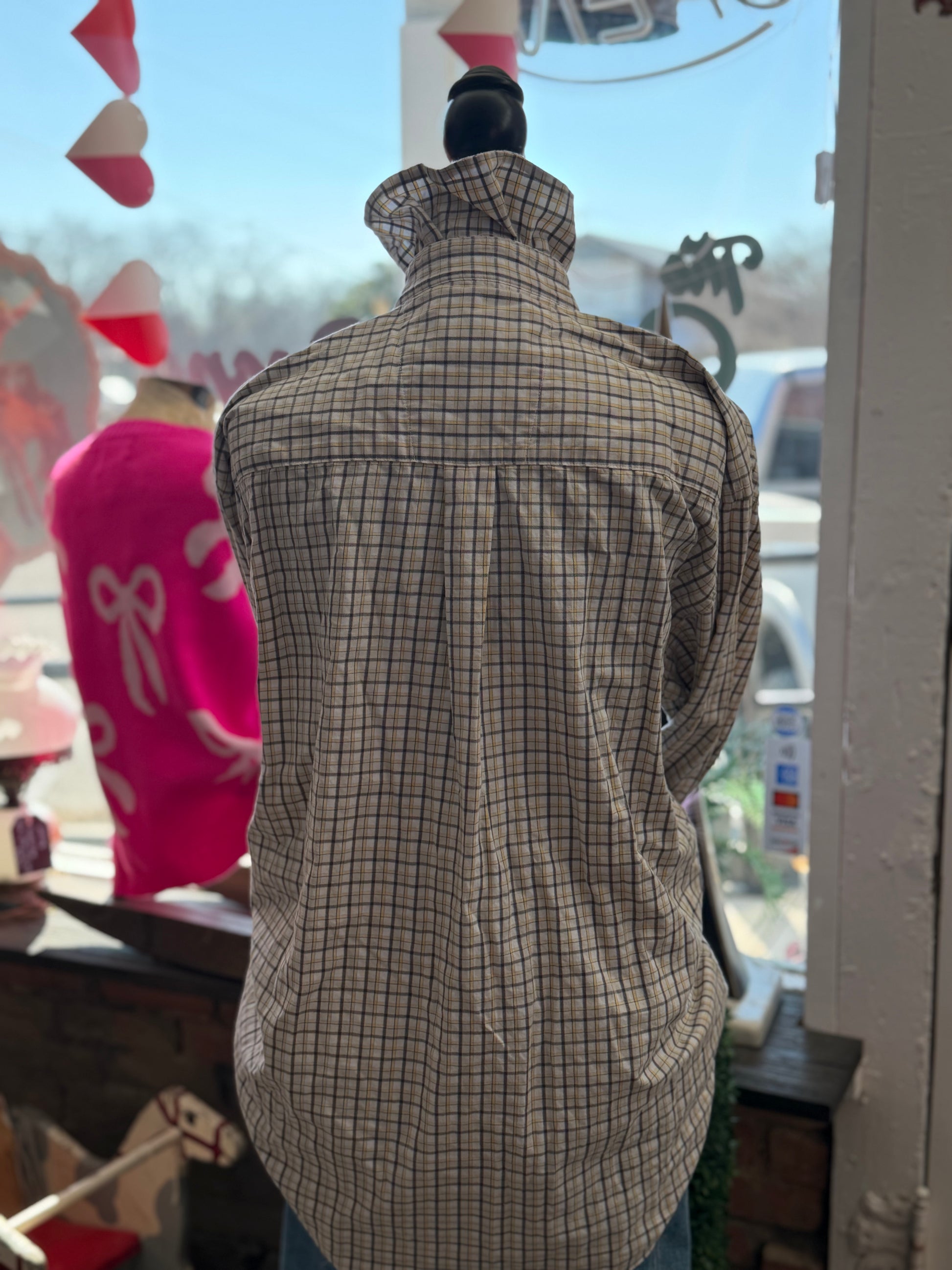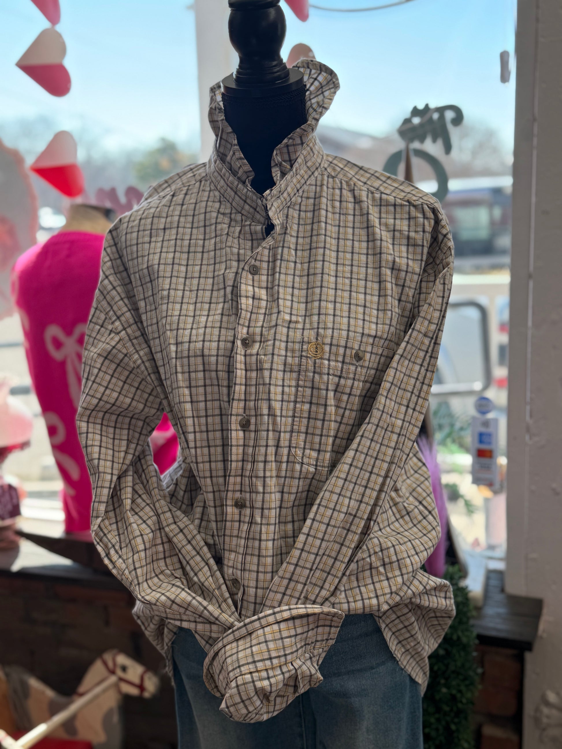 George Strait Wrangler button up Large tall with crinkle collar w/raw edge